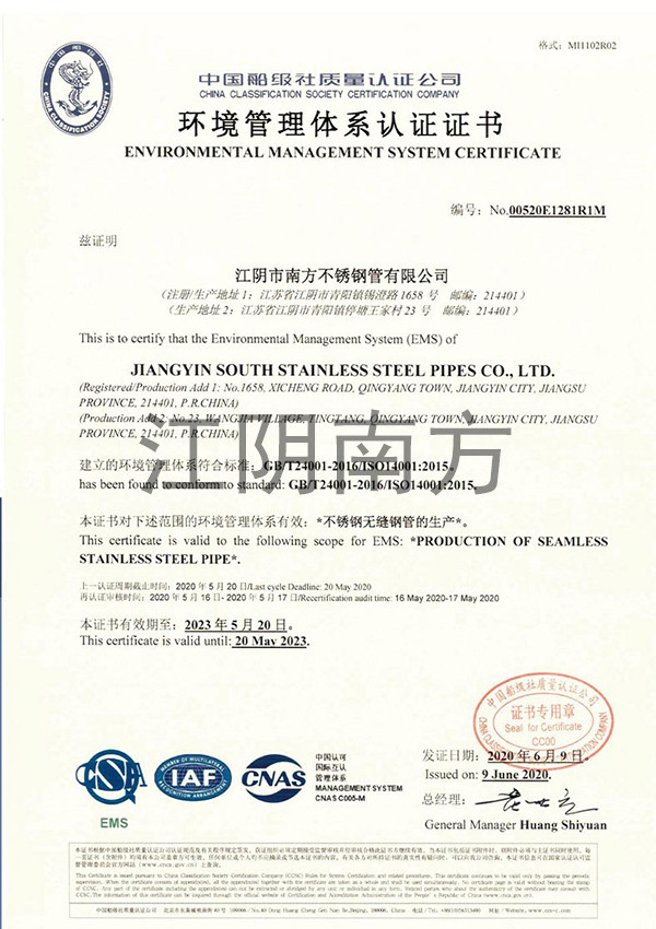环境管理体系认证证书.