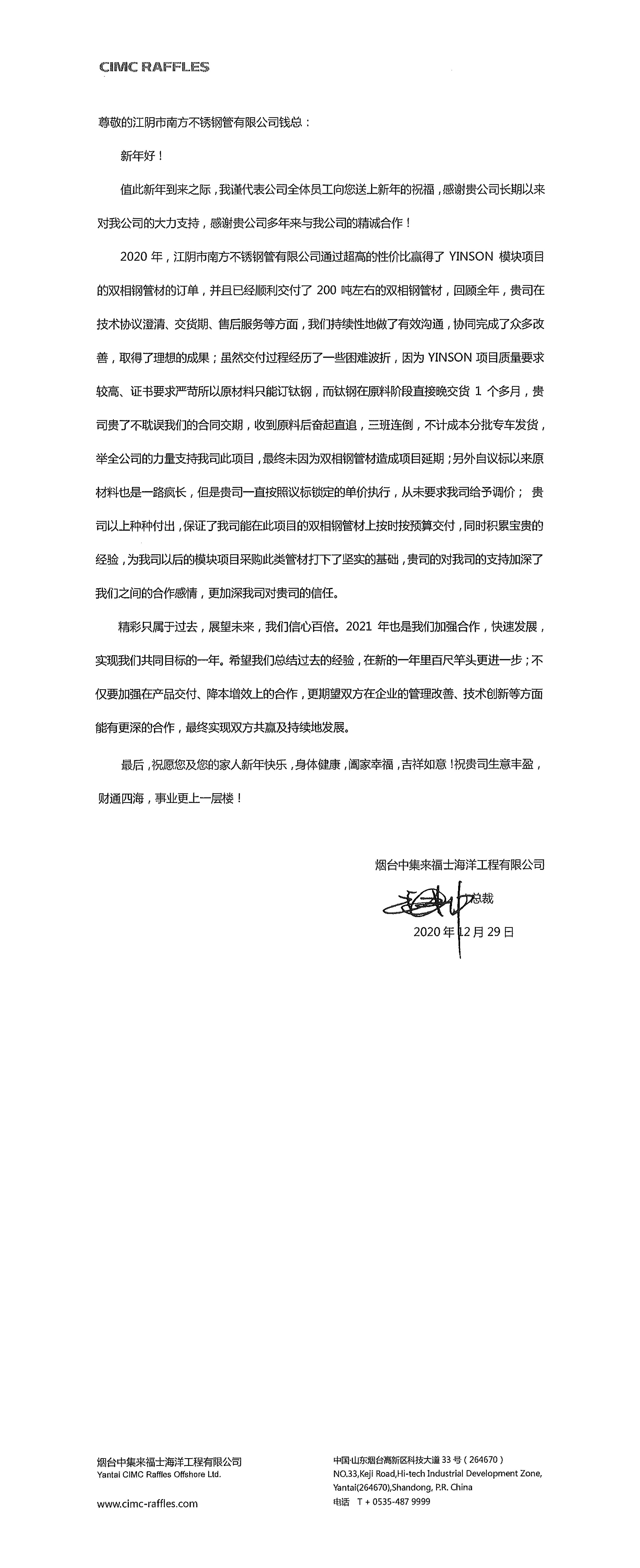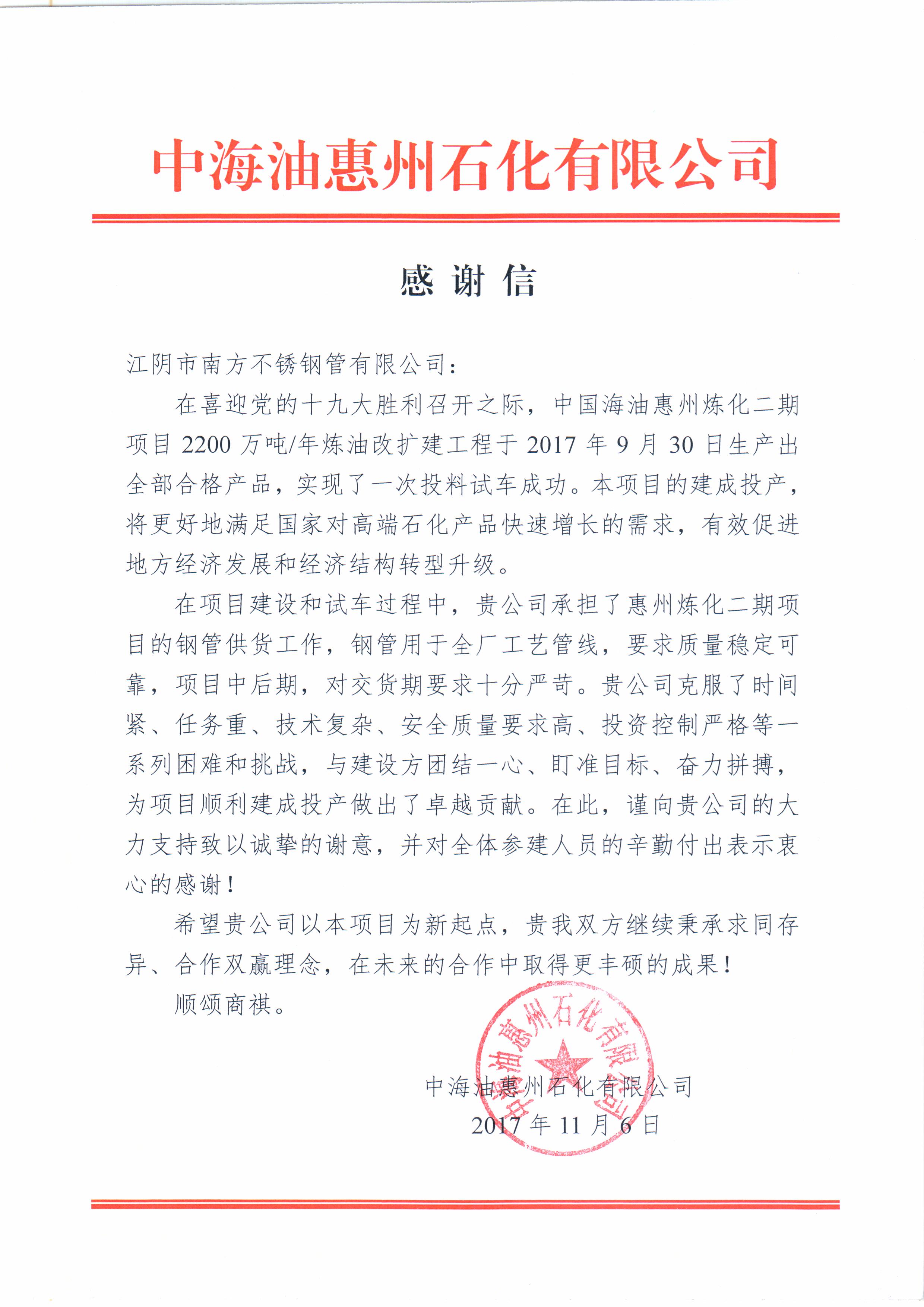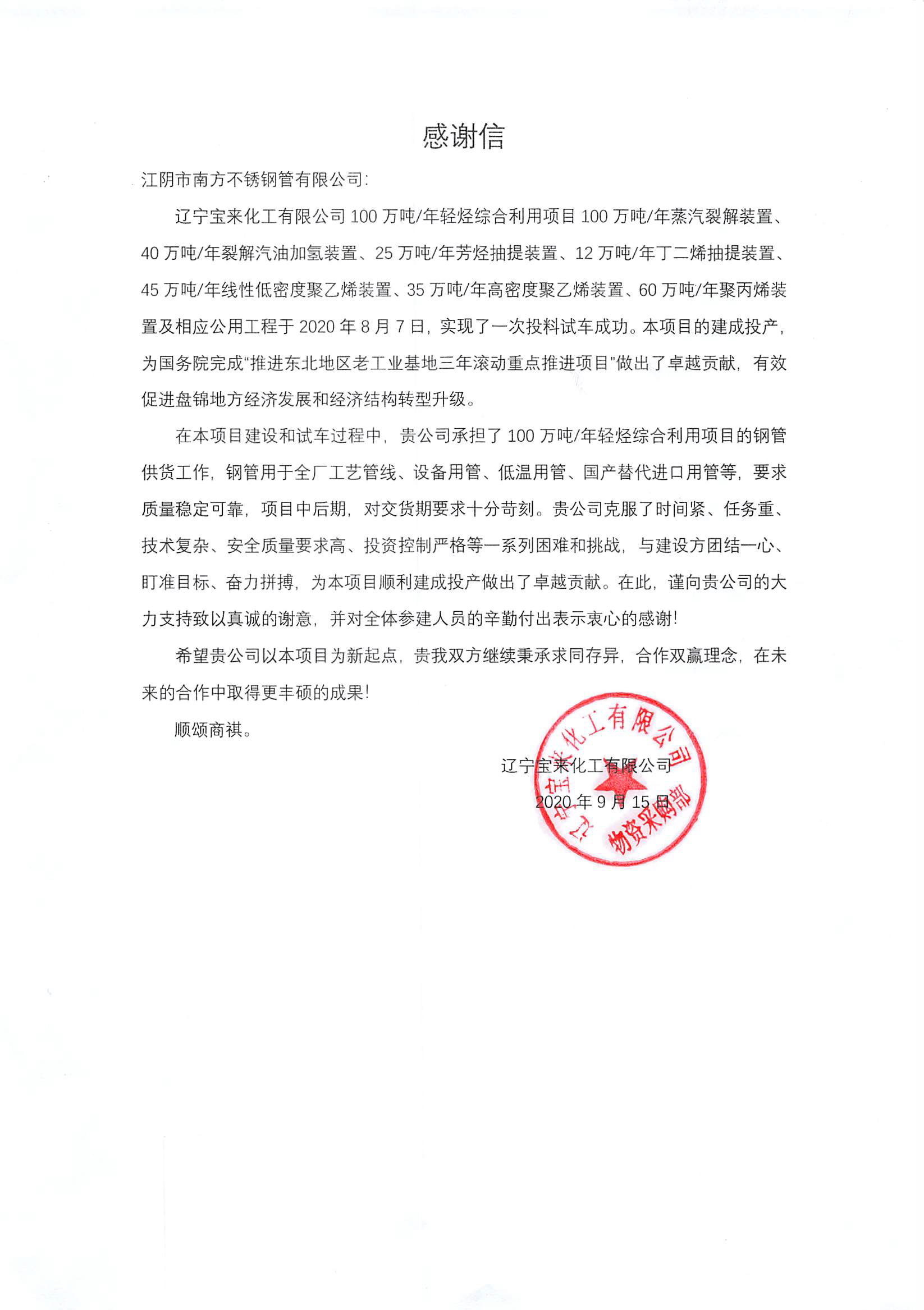 辽宁宝来感谢信